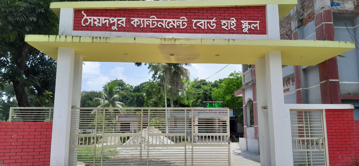 সৈয়দপুর ক্যান্টনমেন্ট বোর্ড হাই স্কুলটি প্রথমতঃ বাঙালীপুর রেলওয়ে কলোনী প্রাথমিক বিদ্যালয় হিসেবে ১৯৫০ সালে প্রতিষ্ঠিত হয়। স্বাধীনতা পরবর্তীকালে সেনানিবাসে ইউনিট সংখ্যা বেড়ে যাওয়ায় দেশ সেবার অতন্দ্র প্রহরী সৈনিকবৃন্দের ও সেনানিবাসে কর্মরত ব্যক্তিবর্গের পুত্র/কন্যার লেখাপড়ার সুযোগ প্রদানের জন্য ১৯৭৮ সালে সৈয়দপুর ক্যান্টনমেন্ট বোর্ড হিসেবে বিদ্যালয়টি প্রতিষ্ঠিত হয়। পরবর্তীতে ১৯৭৯ সালে জুনিয়র হাই স্কুল এবং ১৯৮০ সালে হাই স্কুল হিসেবে শিক্ষা বোর্ডের মঞ্জুরী লাভ করে। ১৯৯০ সালে প্রথম শ্রেণি হতে পঞ্চম শ্রেণি পর্যন্ত এবং ১৯৯১ সালে ছোট ছোট ছেলেমেয়েদের লেখাপড়ার সুবিধার্থে শিশু শ্রেণি খোলার অনুমোদন লাভ করে।